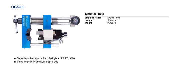 دستگاه OSG-60 گرافیت بردار و XLPE بردار دو کاره میباشد جهت برداشتن لایه گرافیتنی و عایق XLPEتا قطر 6cm مورد استفاده قرار می گیرد. مهمترین ویژگی دستگاه دو کاره بودن می باشد که تنها با جابجا کردن تیغه می توان عملکرد را تغییر داد.