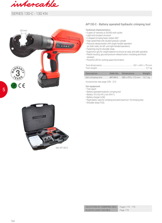 دستگاه پرس کابلشو شارژی مدل AP130-C با قدرتی 130کیلو نیوتن مخصوص پرس کردن کابلشو و دوراهی مسی تا سطح مقطع 400 میلیمتر مربع می باشد.