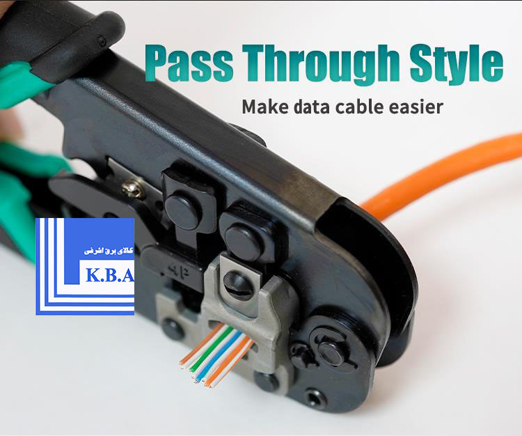 - کاربرد اصلی: پرس کردن سوکتهای عبوری (Pass Through) بهویژه در کابلهای CAT5، CAT6 و CAT7.