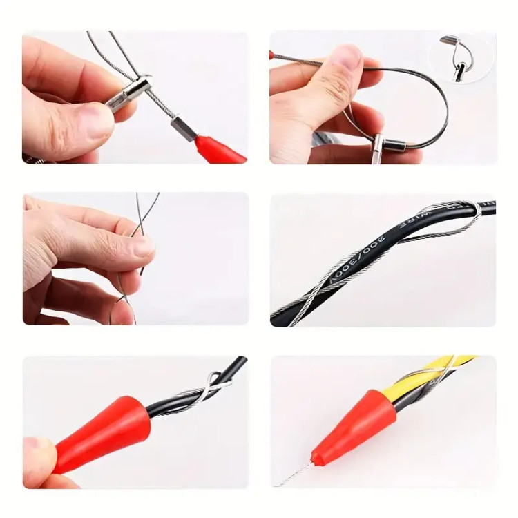 ساخته شده از مواد بادوام، مقاوم در برابر سایش، می تواند از سایش پوشش جلوگیری کند و سایش سیم را کاهش دهد. درپوش قرمز هنگام کشیدن سیم از شکستگی جلوگیری می کند. طرف دیگر توسط یک کمربند ماهی متصل می شود تا خط و کمربند ماهی محکم به هم متصل شوند. فنر را فشار دهید تا محکم شود و سر خوردن آن آسان نباشد. می توانید کشش کابل را تنظیم کنید که بسیار راحت است. نیازی به چسباندن یا بستن سیم نیست. آسان برای استفاده، بادوام در استفاده، می تواند چندین سیم را در یک زمان متصل کند.