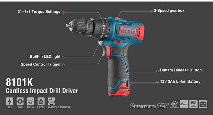 کیت دریل پیچ گوشتی چکشی شارژی K8101 رونیکس؛ انتخاب قدرتمند و کاربردی در مصارف خانگی و صنعتی!