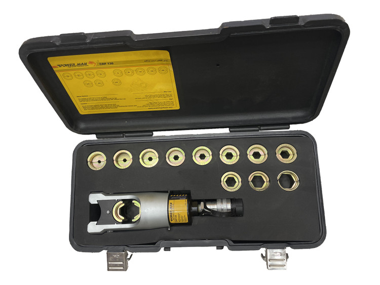کلگی پرس کابلشو هیدرولیک با مارک POWERMAN ساخت ایران به همراه کلیه لقمه ها از سایز 16 الی 400 در داخل یک جعبه پلاستیکی فشرده و مقاوم ارائه می گردد.